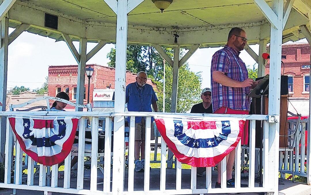 The Hazen Chamber of Commerce sponsored morning and evening events on Monday, May 27, to celebrate the Memorial Day holiday. The first event was the annual memorial service held at 11:00 a.m. at the gazebo. The second event was a new addition to the day, a downtown concert with vendors and food trucks. The evening event began at 6:00 p.m. and ended at 9:00 p.m. with a fireworks display. Cody Snider organized the morning event, and Jennifer Kelly organized the evening. (Dave Hare photo.)