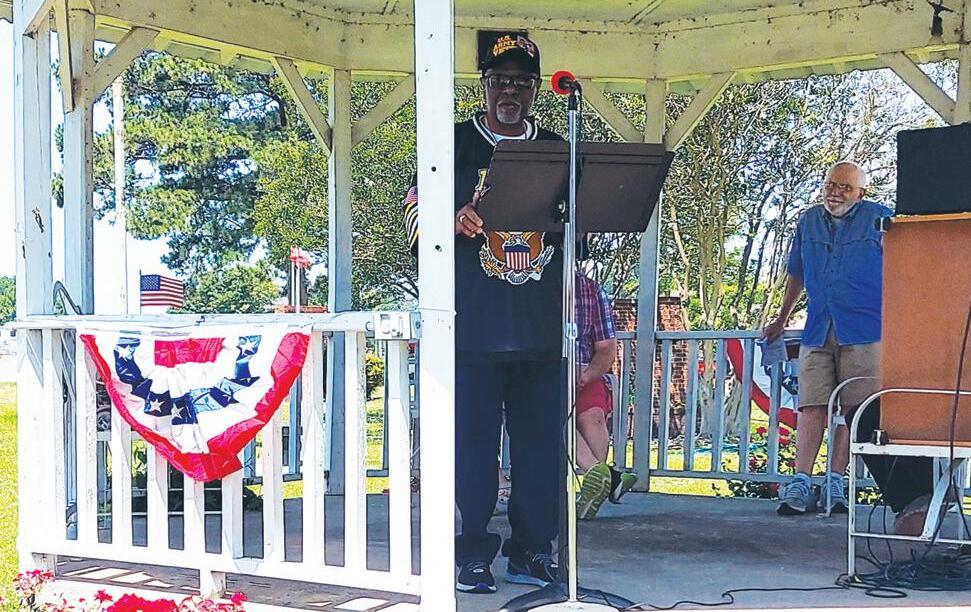 The Hazen Chamber of Commerce sponsored Memorial Day in the Park on Monday, May 27th with two events, the morning 16th Annual Memorial Day Service at 11:00 a.m. where the names of the fallen soldiers from the Hazen area were read to a crowd of approximately 60 people. The names of 270 veterans who came home safely but have since passed on were also read. The speaker for the morning was veteran Leonard Washington. Cody Snider was the emcee. That evening, from 6:00 p.m. until 9:00 p.m., the Chamber held a Memorial Day celebration downtown. The event featured local vendors, bouncy houses for the kids, food trucks, and music provided by the Midnight South band. The evening ended with a fireworks display. The pictures directly below are from the morning service. The flag that was raised from half-mast at noon was originally flown during the Iraqi Freedom operation and was given to the city by Britt Stallings after his grandmother Betty Stallings passed.
