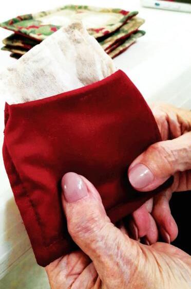 Show and Share: Daphne shared her secret project from last month. She had made some quilted, scented coasters. The coasters have a secret pocket in the back for a cinnamon packet made from interfacing and cinnamon. When used with a cup of hot tea or cof-