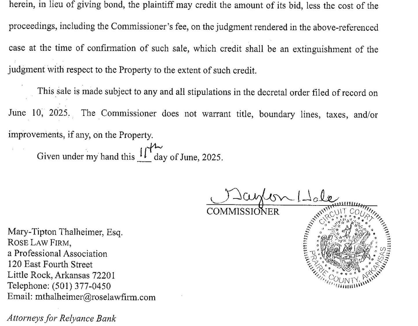 The DeValls Bluff City Council met on June 2th. Mayor Darlene Connor, Recorder/Treasurer Marcus Metcalf, and Council members Scott Troy, Carol Griffin, Shirley Goff, and Pam Del Giorno were present. A resolution was passed authorizing the mayor to sign documents necessary for the sale of real estate. The mayor will be authorized to sign all necessary documents to transfer the bank prop-