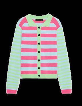 Pero lo verdaderamente interesante ocurre en los prints conversacionales. Esos que parecen sacados de un cuaderno intervenido, de un sueño raro o de una galería de Warhol. Rostros, ilustraciones etéreas, paisajes abstractos… piezas que cuentan algo sin necesidad de explicarse. Porque si algo define esta temporada, es que la ropa quiere decir algo, aunque no siempre sepamos exactamente qué.