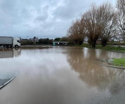 Meadows car park N of City Link Rd, flooded on 24/11/24