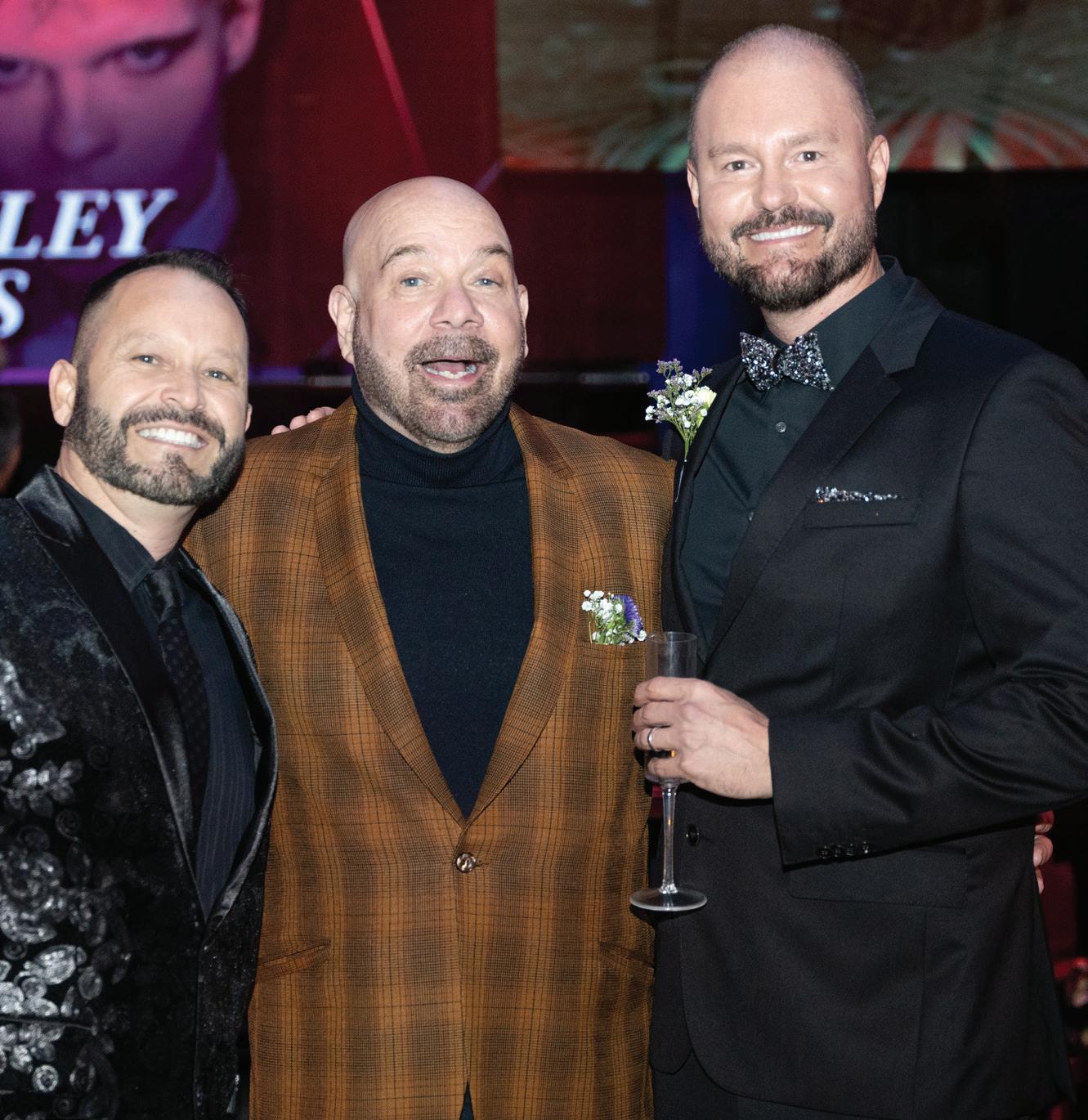Out100 honorees Dr. Carlton Thomas (right) and Jason Stuart (center) and friend smile for the cameras