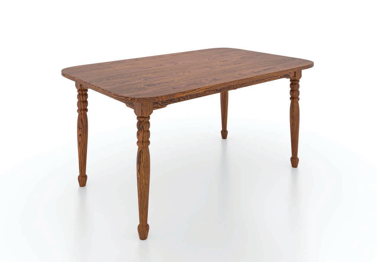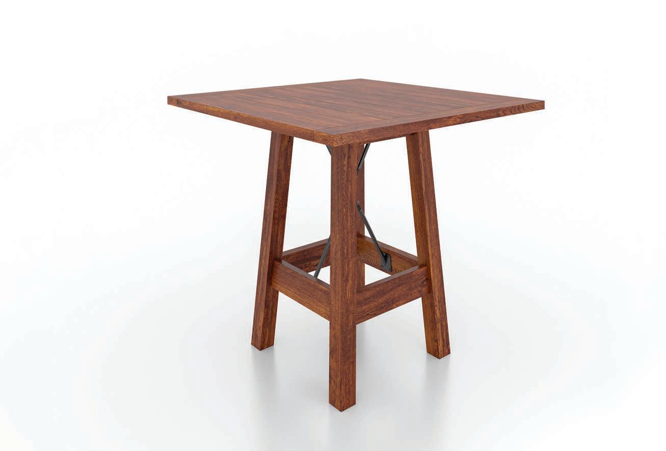 Splay Leg Table Standard Features • Square Shape • Hand Rail Edge • 1" Top • 21/2" Leg Size at Top Wood Species (3 Price Points) • Rustic White Oak, Red Oak, Wormy Maple Top, Rustic Cherry, Brown Maple • Elm Top/BM Base, Cherry, Hickory, Hard Maple, Rustic QSWO, Rustic Hickory, Rustic Walnut • QSWO Table Top Shapes Apron Styles Edge Profiles Bow Tie 3" Straight High Arched Slightly Arched Double Bow Tie Dutchess Eased Beveled Queen Anne Quar ter Round Half Round Hand Rail Round Oval Square Oval Square Boat Clipped Corner Sabre Top Eased Quar ter Round Half Round Round Oval Square Oval Square Eased Beveled Queen Anne Quar ter Round Half Round Hand Rail Round Oval Square Oval Square Boat Clipped Corner Sabre Top Bow Tie 3" Straight High Arched Slightly Arched Double Bow Tie Dutchess Beveled Queen Anne Hand Rail Boat Clipped Corner Sabre Top • 36" High • 42" High • 11/4" Tops Add 30% • Marie's Settlers Top Add 20% • 11/2" Tops Add 40% • 11/4" Settlers Tops with Breadboard End Add 50% • Custom Sizes (use next higher price) • Add 5% for Elm Base Optional Features Leg Tables 2021 Product Catalog | Page 53