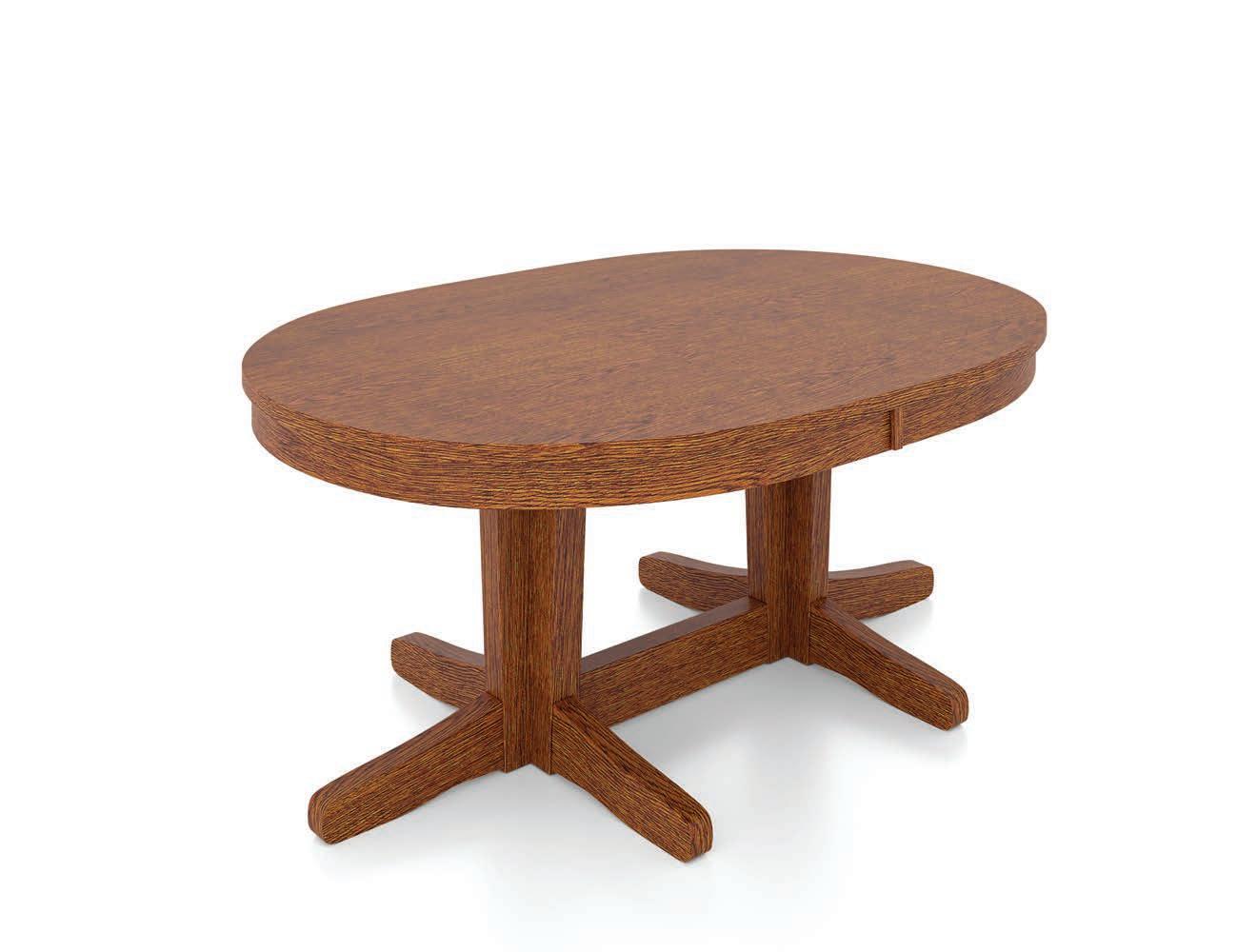 Mission Single Pedestal Eased Beveled Queen Anne Quar ter Round Half Round Hand Rail Round Oval Square Oval Square Boat Clipped Corner Sabre Top Table Top Shapes Standard Features Edge Profiles Wood Species (3 Price Points) • Round or Oval Shape • Eased Edge • 1" Top • Rustic White Oak, Oak, Wormy Maple Top, Rustic Cherry, Brown Maple • Elm Top/BM Base, Cherry, Hickory, Hard Maple, Rustic QSWO, Rustic Walnut • QSWO Eased Beveled Queen Anne Quar ter Round Half Round Hand Rail Round Oval Square Oval Square Boat Clipped Corner Sabre Top Optional Features • 36" High • 42" High • 11/4" Top Add 30% • Custom Sizes (use next higher price) • Marie's Settlers Top Add 20% • Add 5% for Elm Base 2021 Product Catalog | Page 21 Pedestal Tables