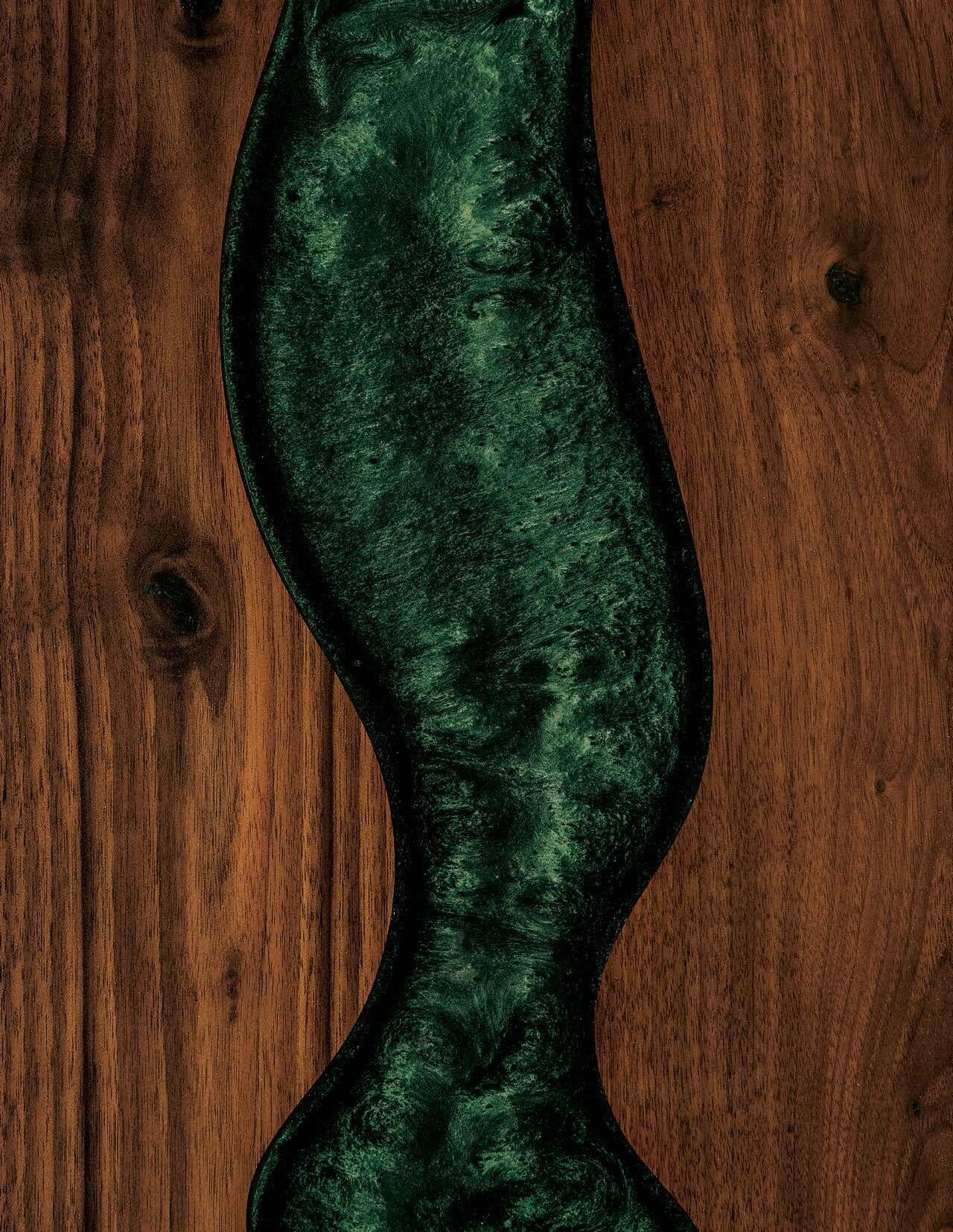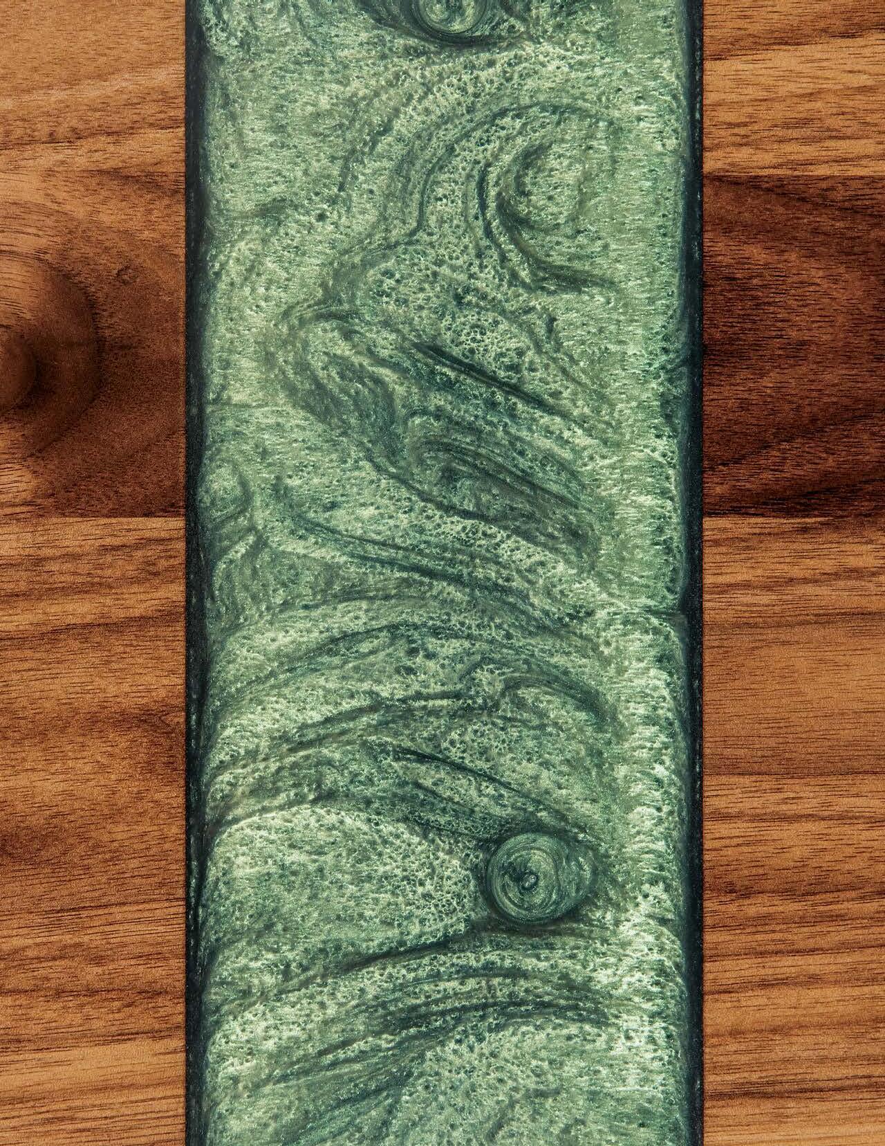Shown in 24" x 48" walnutwithnottingham greenriverand 100-sheen with Illusion base in silver vein