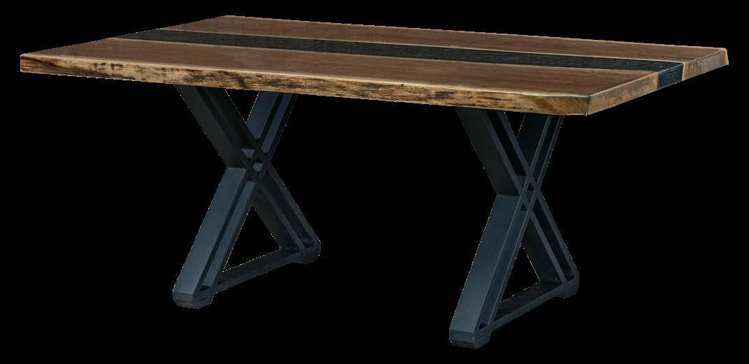 Shown in 38" x 84" walnut with smoke epoxyinvoidsand 10-sheen with Frankfort base in flat black