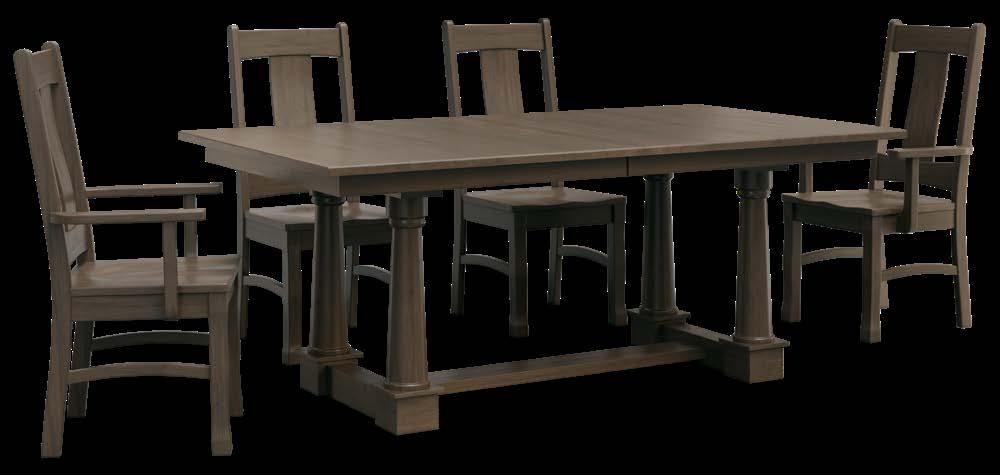 Shown in 48" x 132" hardmaplewith bel-air stain and stone river and 100-sheen with Maxwell base withaspreaderbar in flat black