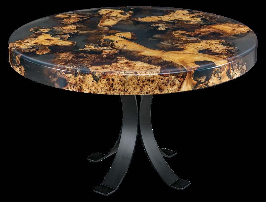 Shown in 52" round buckeyeburlwith transparentblackepoxy in voids and 65-sheen withImpressionbase in flat black