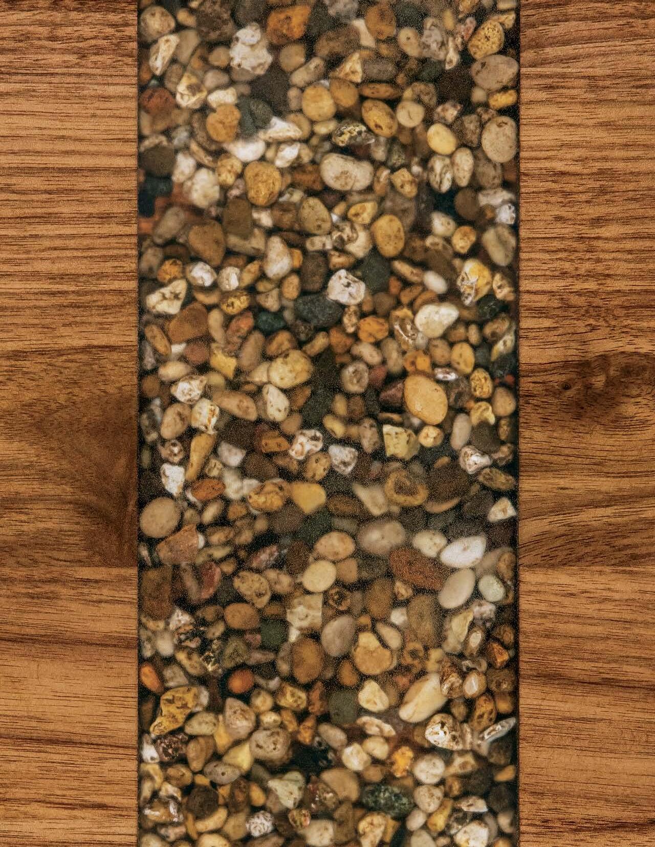 Typically we cover a table top with 1/4" to 3/8" of clear epoxy, and the bottom with 1/8" – this prevents our tables from warping and enhances the piece!
