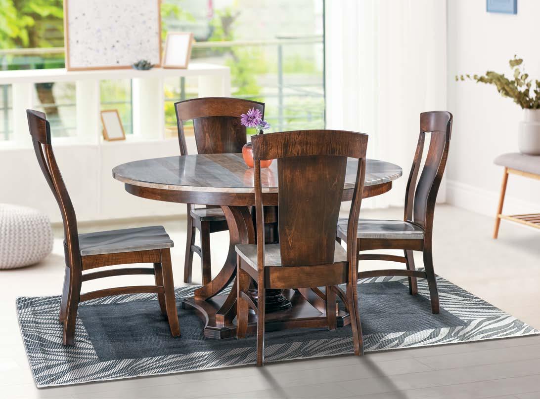 The Bradenton Dining Table features 1" tops, up to four leaves.