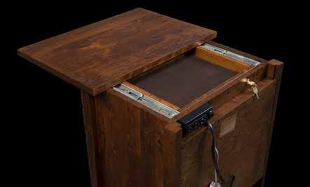 Optional nightstand slide-top with hidden felt lined drawer for extra household security measures. Optional power strip. Night