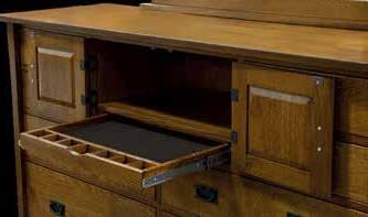 Shown in Red Oak with Mineral Stain; tops withFlint. Available in Oak, Brown Maple, QSWO, Walnut, and Cherry.