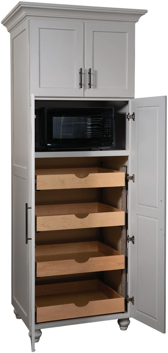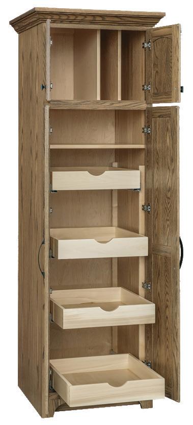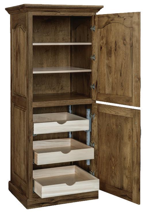 Excellent cabinet for roomy kitchens or a multi-purpose masterpiece for smaller spaces, the Classic Mission Pantry brings big style regardless of size. This pantry features ample storage for your kitchen items.