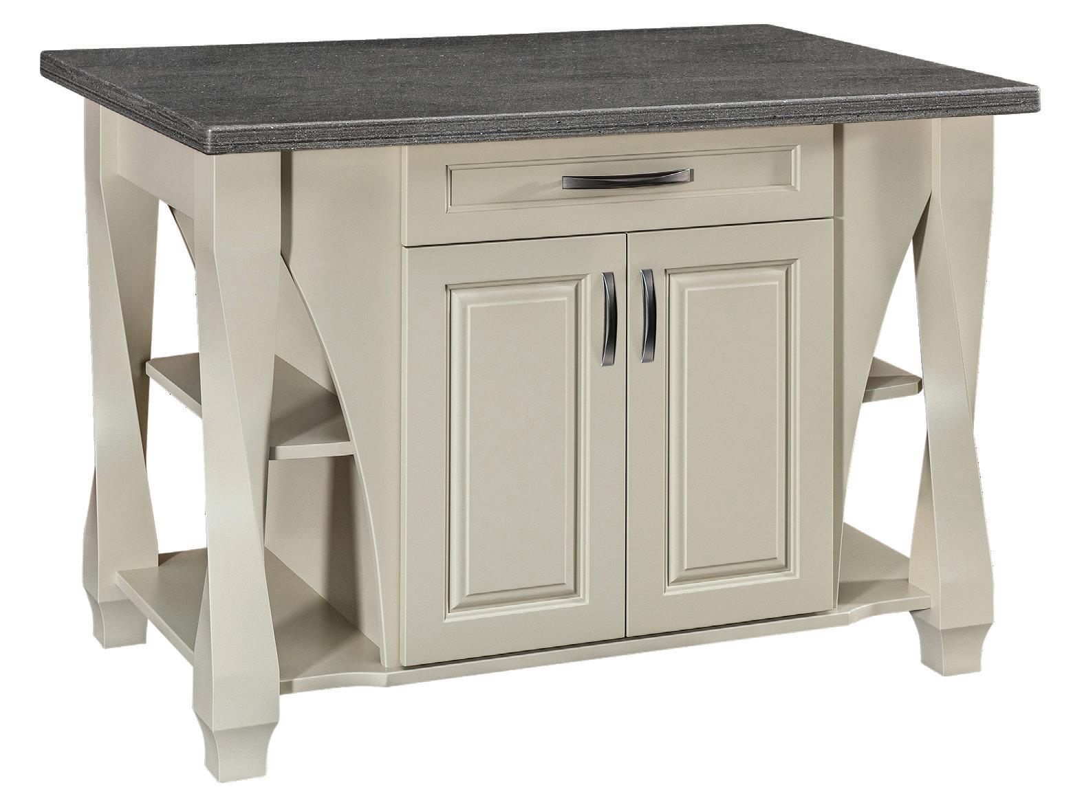 Delivering modern farmhouse charm to your kitchen, the Bella Kitchen Island provides space for food prep and dining. An ideal focal point for your culinary space, this kitchen island with storage features a large countertop. Featuring adjustable shelving and two fullextension drawers, this island will keep your kitchen organized and clutter-free.