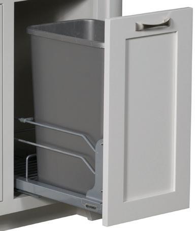 Modern island featuring spice racks in both ends, a waste basket drawer & 2 pullout shelves. Will brighten any kitchen!
