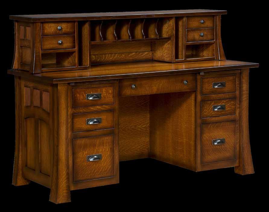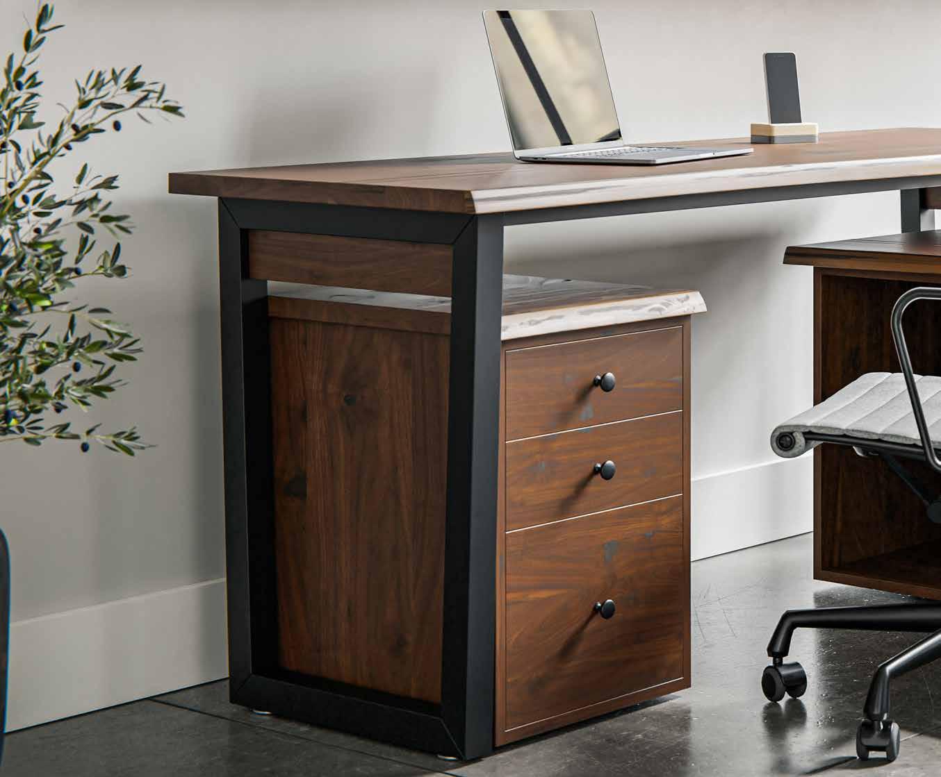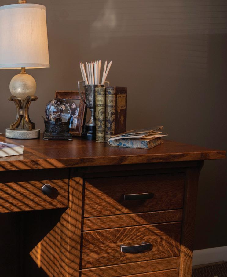 One standard feature on all desks is a right-hand pedestal top drawer with pencil holder.