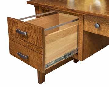 File drawers over 16" can be configured for laterallyoriented legal files. Full-extension drawer slides allow easy access to all files. Features
