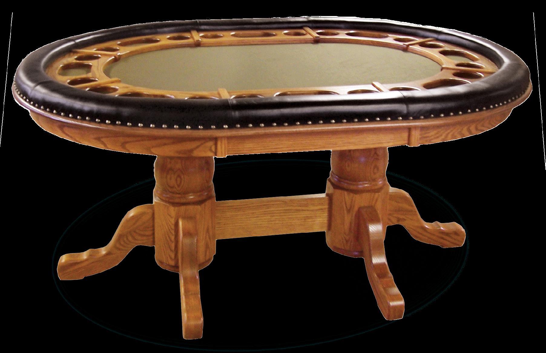 Available in Oak, Cherry, Brown Maple, and Quartersawn White Oak. Customize with drink holders and chip areas. Other pedestal options available.