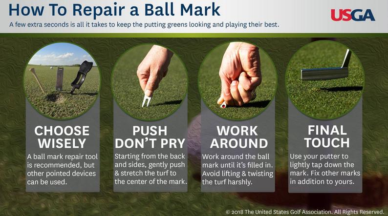 If you are unsure of how to fix a ball mark please reference the diagram attached at the bottom or stop and speak to a member of the golf or greens staff.