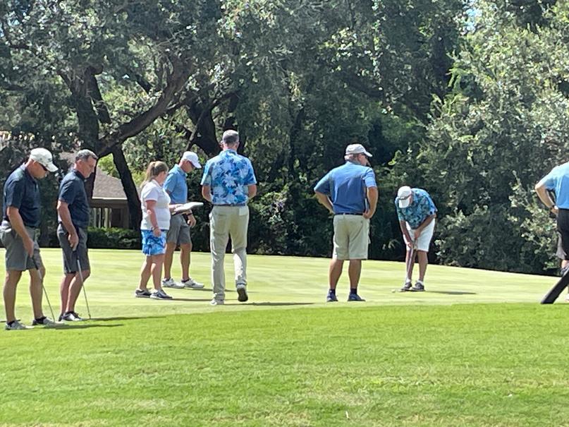 Now back to the putt, it was during the Tournament Shootout on the 18th green of Robber’s Row. Blue flag. Earlier that morning, our assistant superintendent, Jim Williams, said he was going to cut the cup close to the left-hand bunker to make what’s known as a “sucker pin.” He did and it was… Challenging!