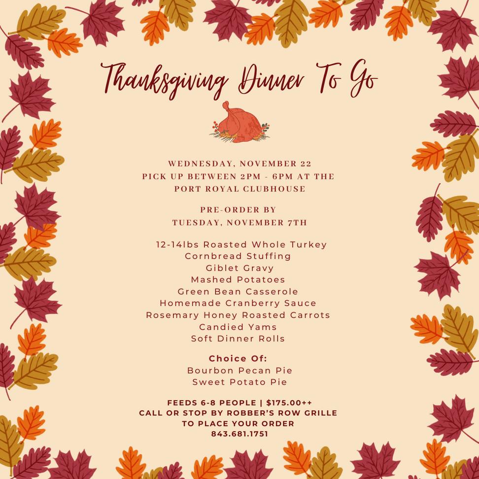 AROUND THE CLUBHOUSE Thanksgiving Dinner To Go