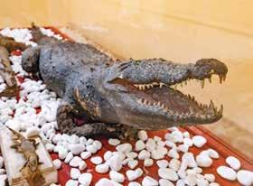 At the top floor, one enters a small room showcasing local and exotic reptiles. A display highlights the resident reptiles like the Western Whip Snake, Leopard Snake and Algerian Whip Snake, Ocellated Skink, Chameleon, Geckoes and models of the different races of the Maltese Wall Lizard. Another showcases four specimens of the Nile Crocodile Crocodylus niloticus of different ages and sizes. While another display highlights the illegal trade in reptiles through stuffed specimens placed inside small gall-topped boxes, mostly originating from North Africa.