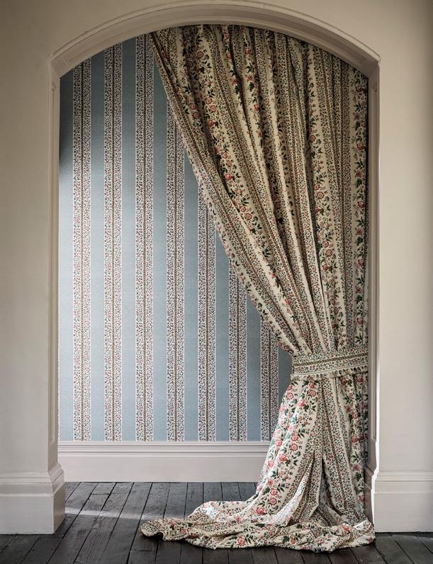 Frilled edge ferns, ancient apple trees heavily laden with fruits, and jubilant delphiniums appear within this exquisite collection. From the inspiring colour palettes of the cottage garden to the Japanese maple avenues, Italian fountains, and an array of gifted treasures from all corners of the world, this collection is an organic blend of culturally inspired designs, from damasks to toiles, tapestries to garden plans and archive florals. To complement, Highgrove by Sanderson Stripes is a beautiful coordinating collection of luxury, heavyweight fabrics woven in Italyclassic and timeless.
