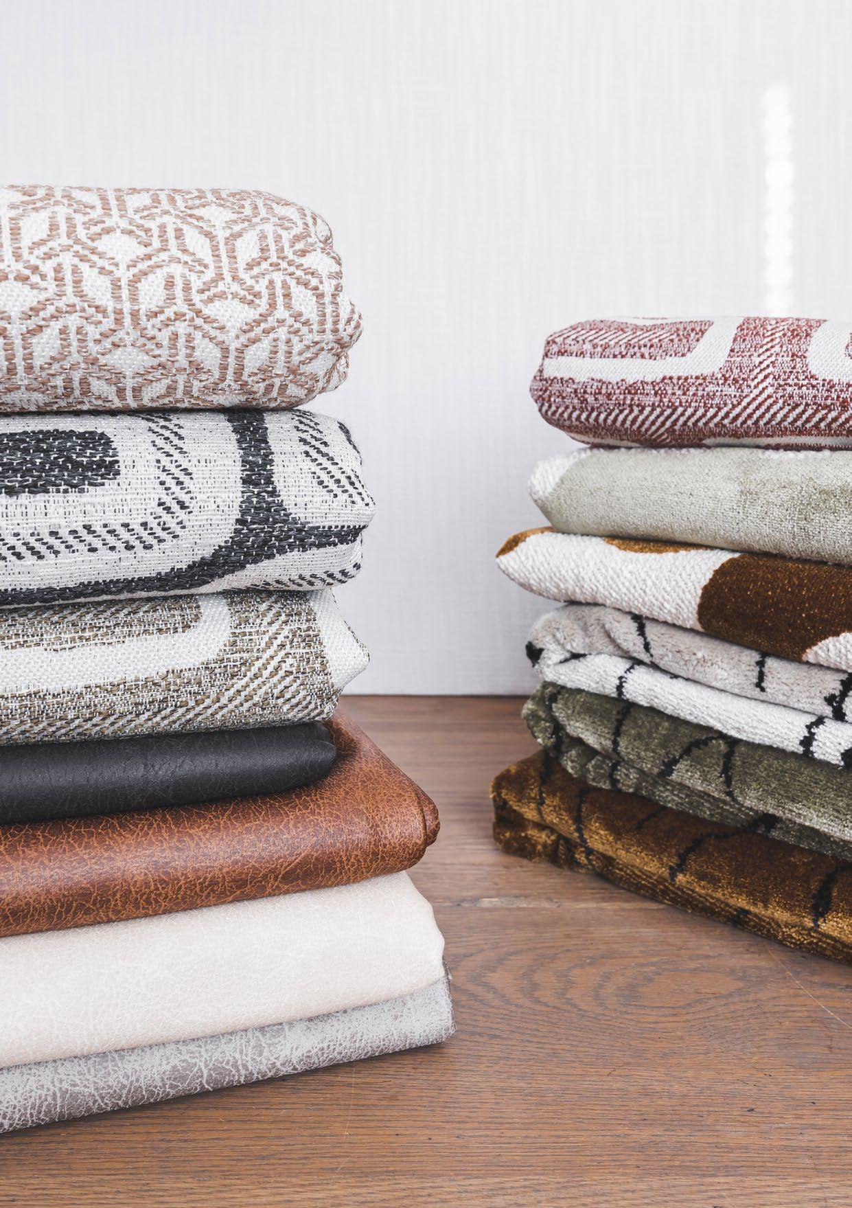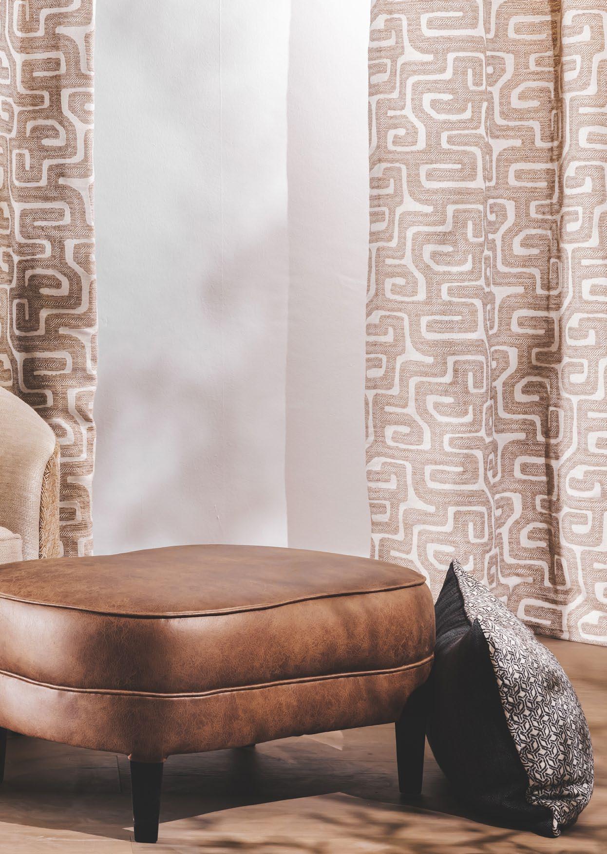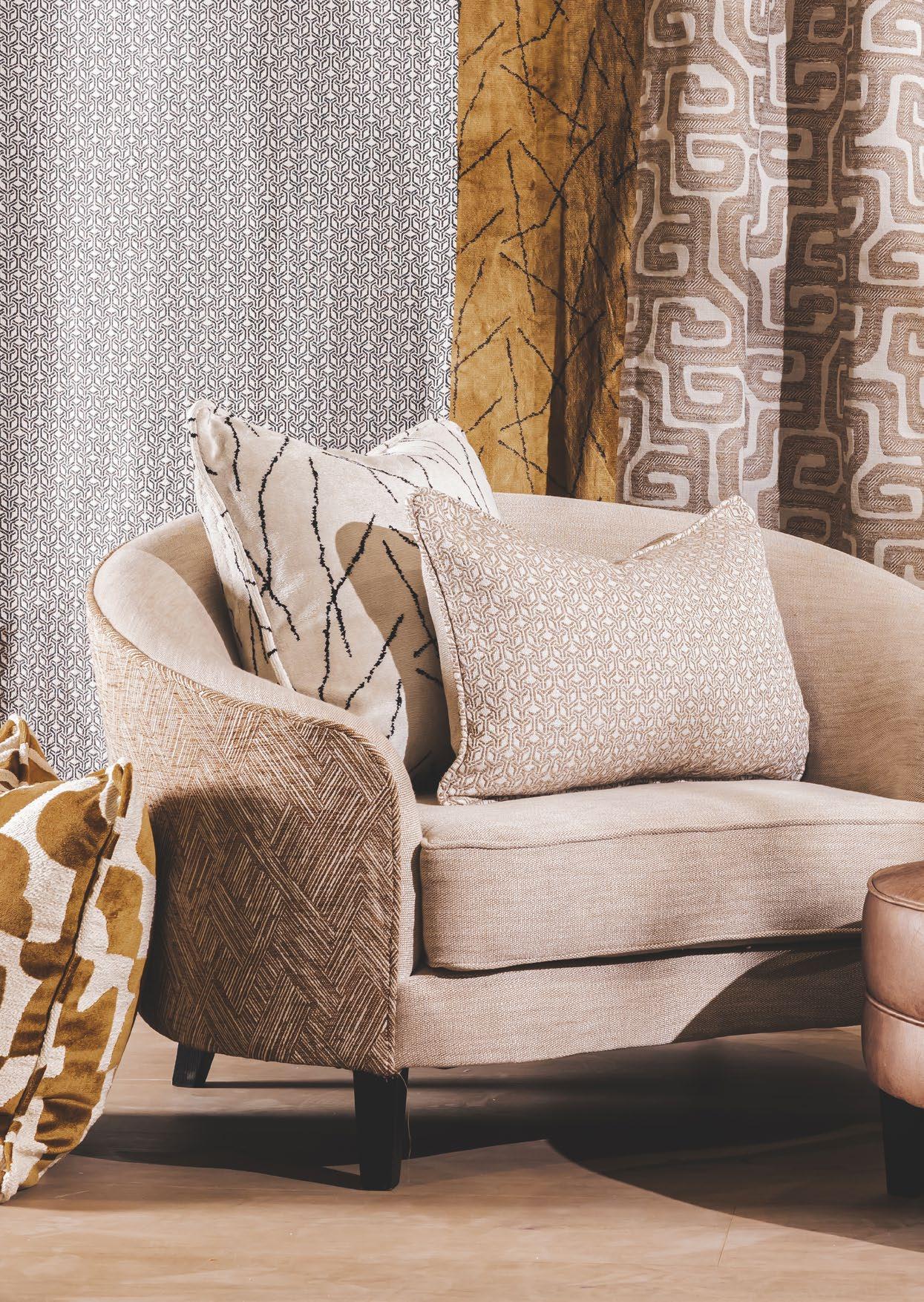 This magnificent indoor collection of upholstery fabric has a global ethnic look and feel. Modern cut-pile velvet designs and chenille jacquards sit comfortably alongside the distinctly artisanal appearance of the chunky flat-woven options and animal-skin prints.