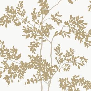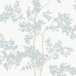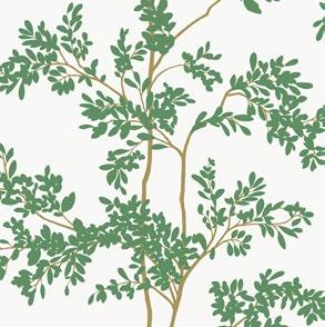 Spindly branches laden with delicate yet densely-packed leaves climb forever upwards in pattern Lunaria Silhouette.