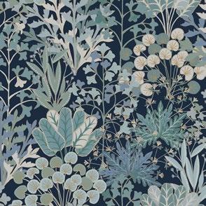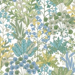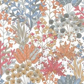A bounty of illustrative botanicals form an artist’s woodland paradise in pattern Forest Floor.
