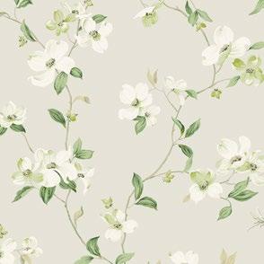 The first heralds of spring, the fleeting beauty of these blossoming trees is artistically rendered for your eternal enjoyment in pattern Dogwood.