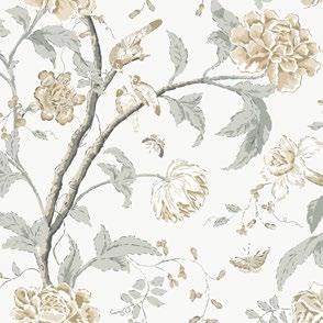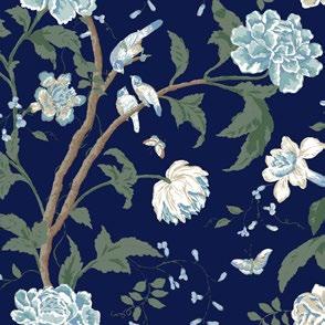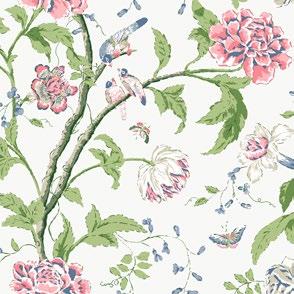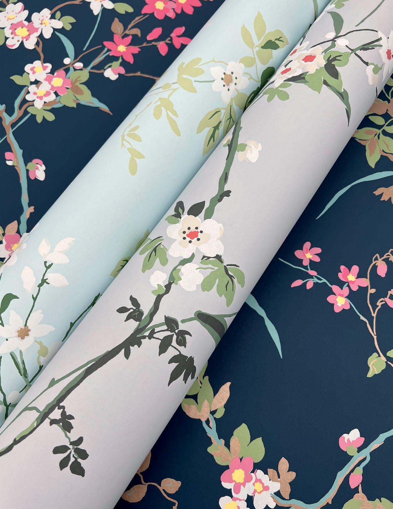 An artistic, fantasy garden with timeless chinoiserie appeal bursts into life in pattern Dream Blossom.