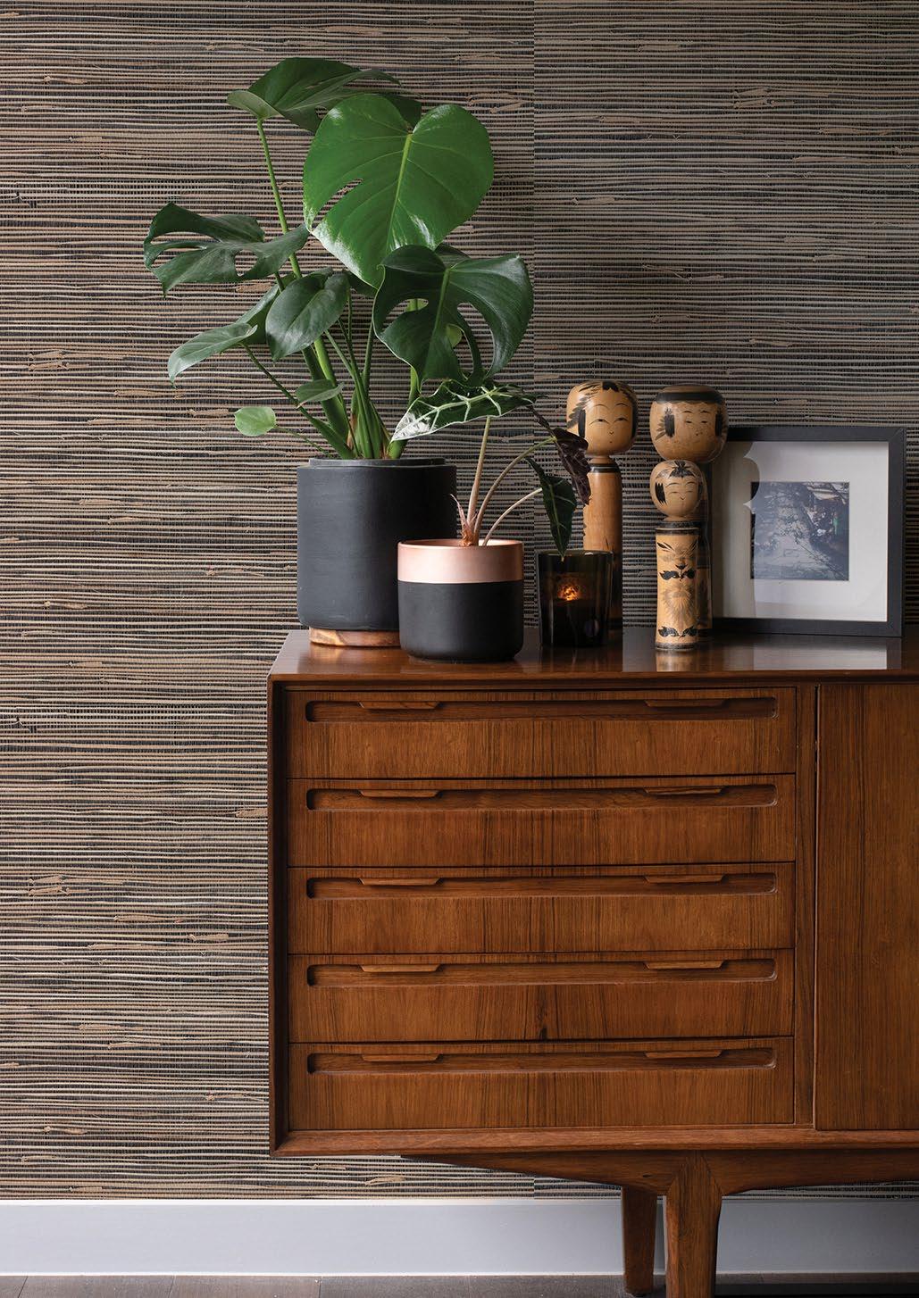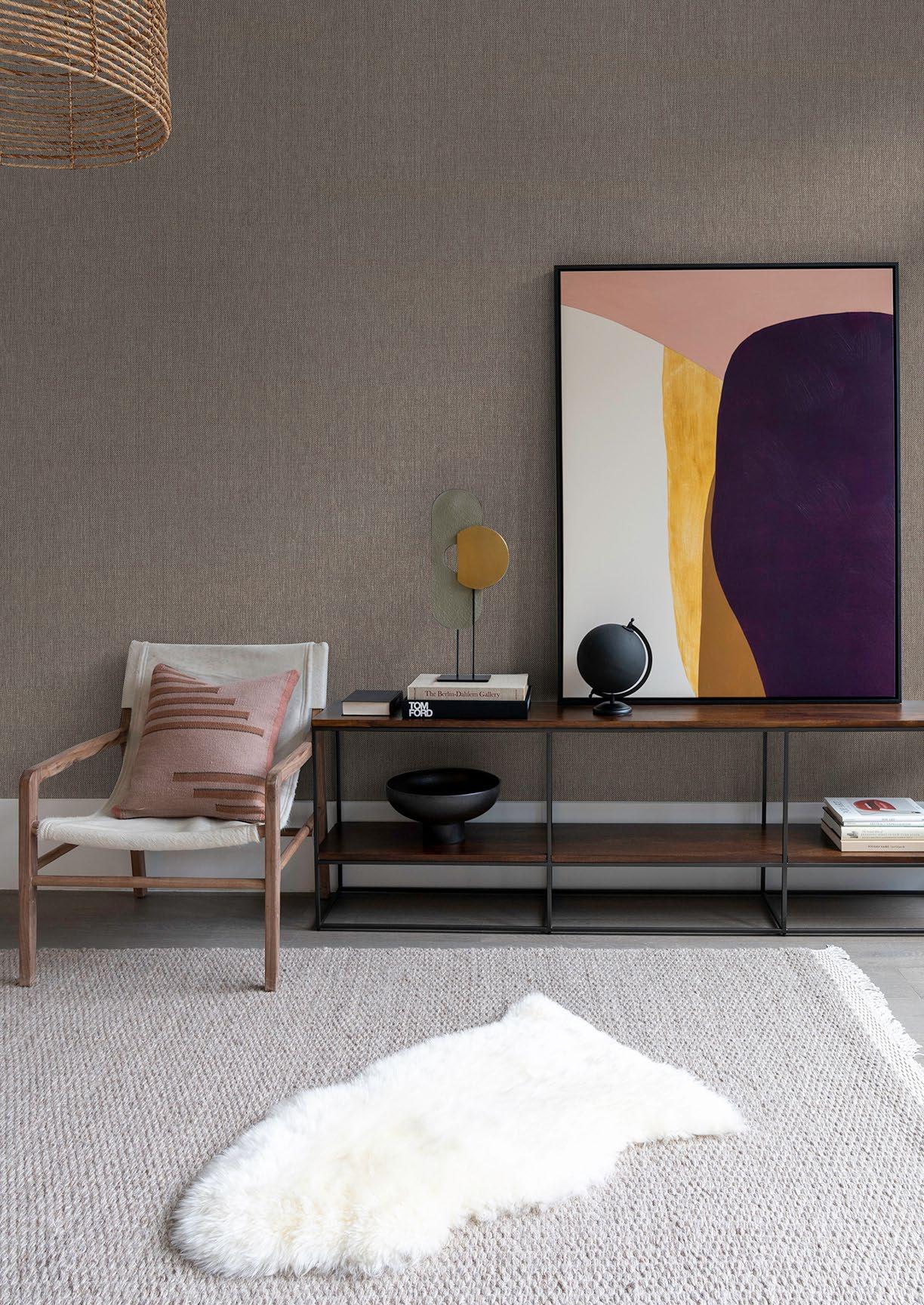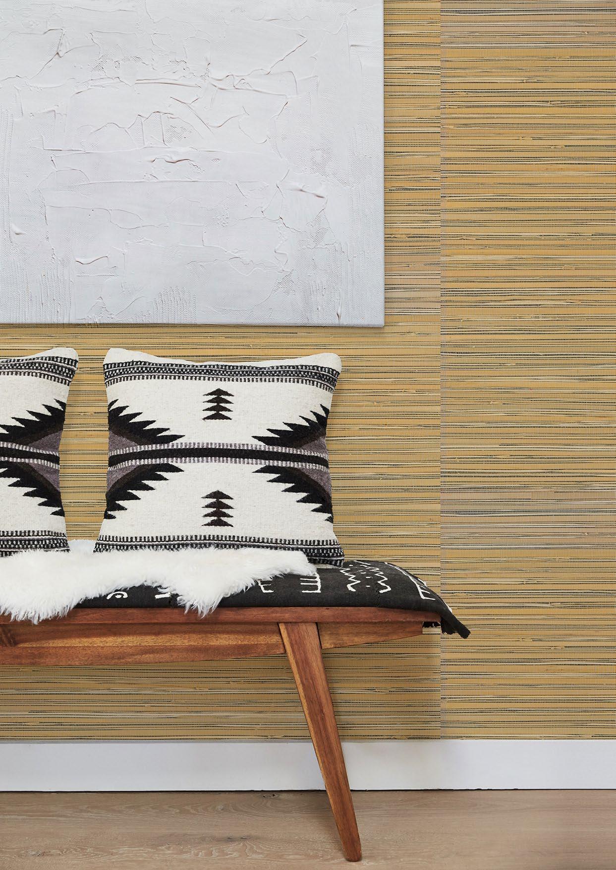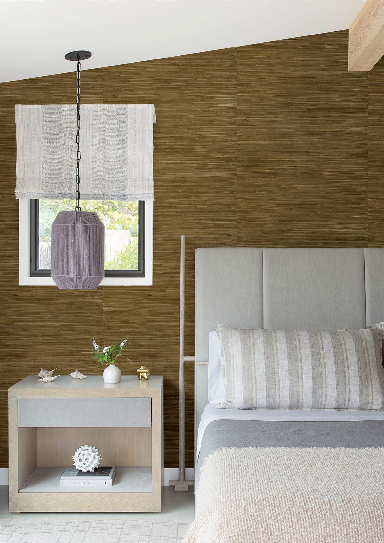 Handcrafted threads and fibres as well as fabric weaves characterise the Twine grasscloth collection by Brewster. Bringing a hint of nature indoors and a sense of serenity to a space, these wall furnishings feature woven jute, and extra-fine raffia and sisal. The natural texture lends the wallpaper a three-dimensional quality, adding depth and warmth to a room and coordinating beautifully with other textures and patterns. A 138cm-wide design is a particular highlight of the Twine range, as is its seemingly limitless colour palette.