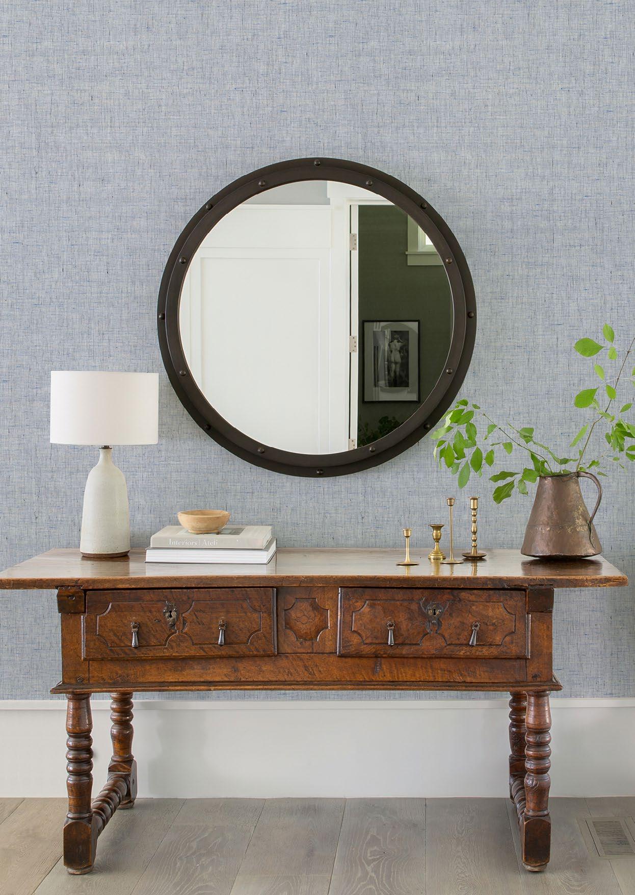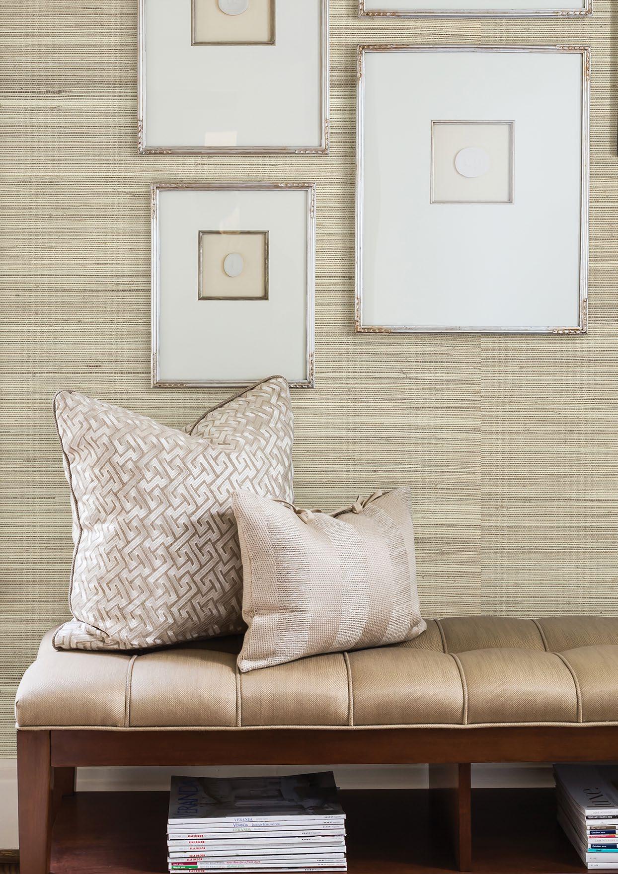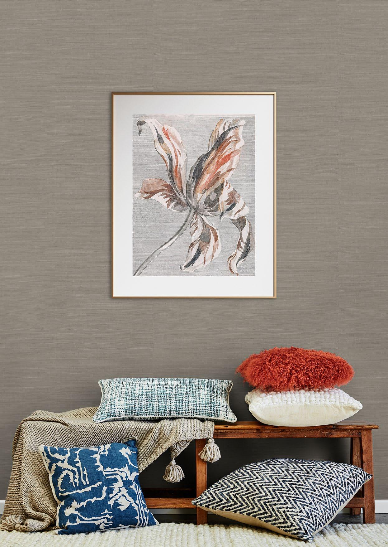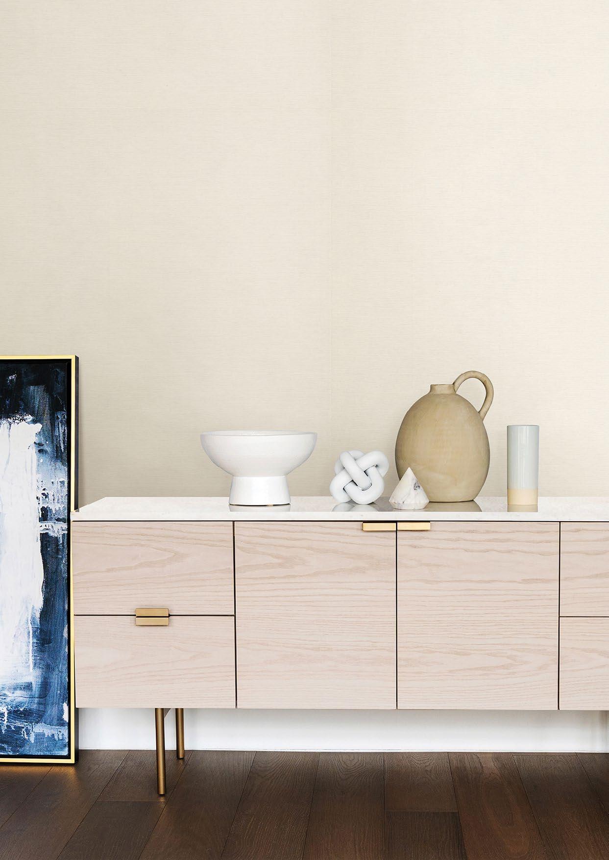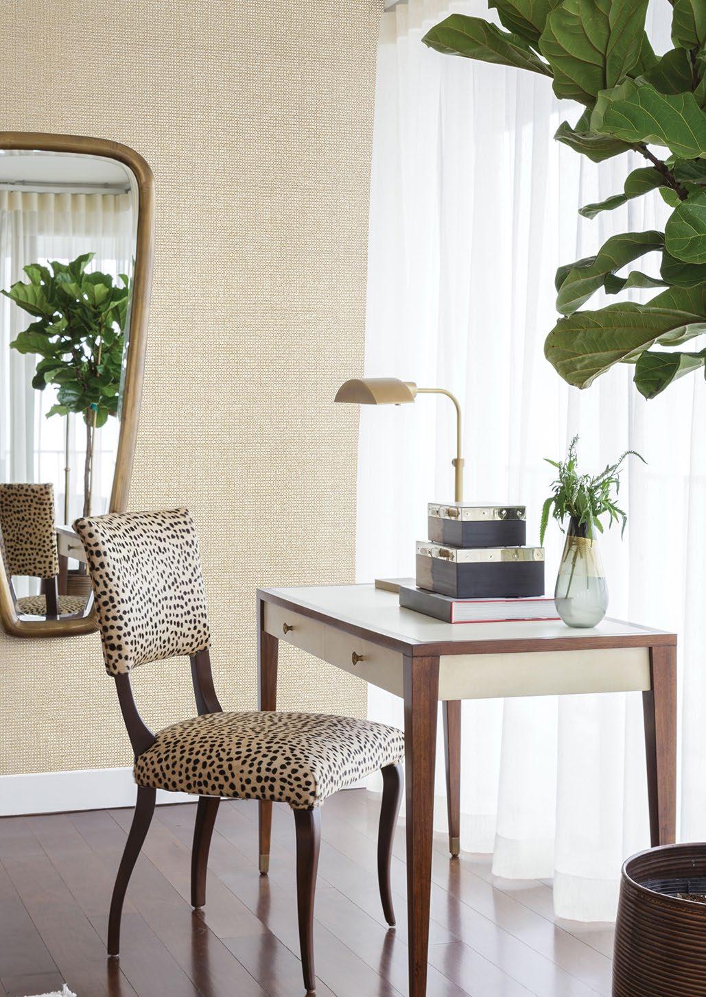 Handcrafted threads and fibres as well as fabric weaves characterise the Twine grasscloth collection by Brewster. Bringing a hint of nature indoors and a sense of serenity to a space, these wall furnishings feature woven jute, and extra-fine raffia and sisal. The natural texture lends the wallpaper a three-dimensional quality, adding depth and warmth to a room and coordinating beautifully with other textures and patterns. A 138cm-wide design is a particular highlight of the Twine range, as is its seemingly limitless colour palette.