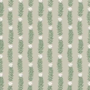 arranged end-to-end to create a delicate, organic stripe. The wavy tendrils of leaves are punctuated by single, stylized blooms.