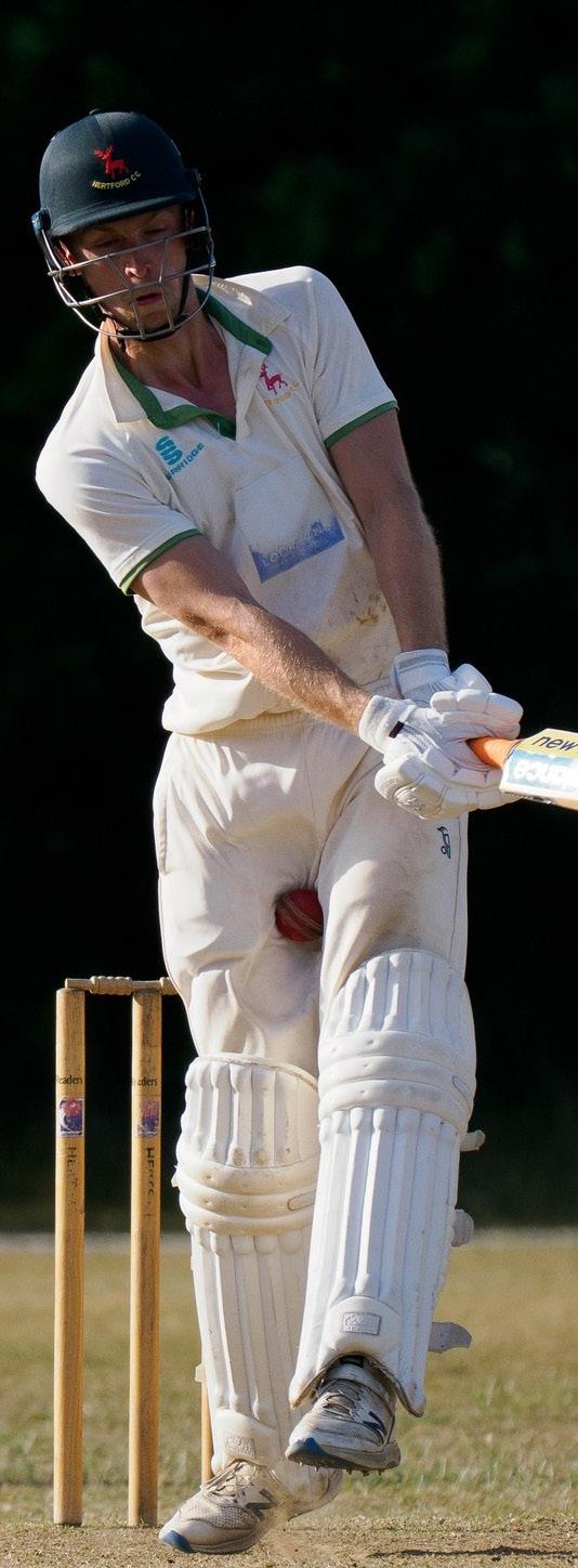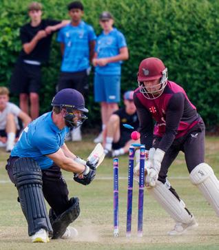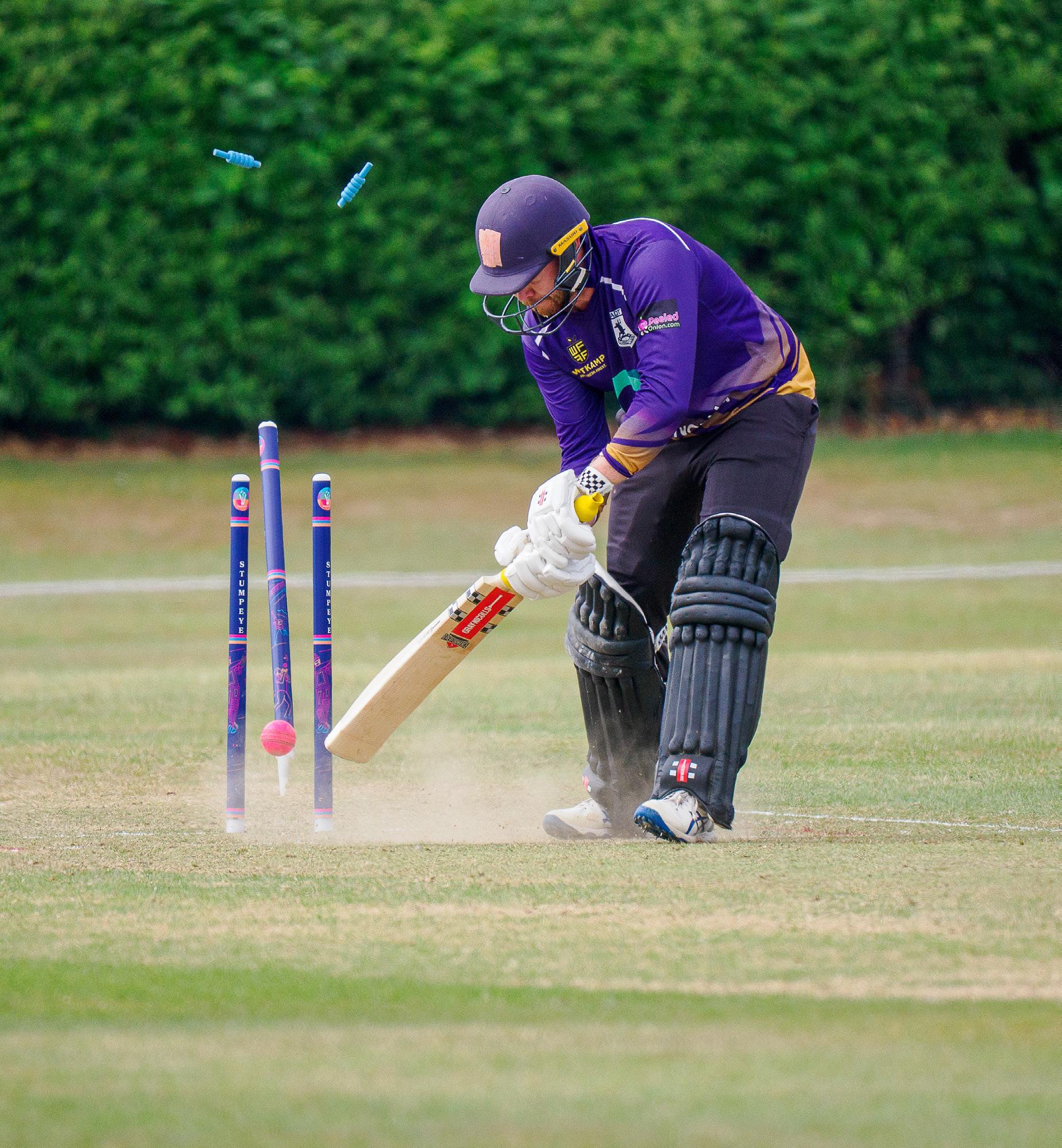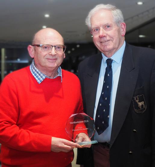 As for the connection between the presentations and the cricket photo, the player being bowled is Dom Chatfield of Radlett, whose day job is ECB Liaison & Executive Officer and Head of Participation, at Hertfordshire Cricket Ltd. One of his tasks is to organise the aforementioned Cricket Collective Awards. This picture was taken by Paul Williams, at the Readers T20 Finals and Dom's spectacular demise came in Radlett’s semi-final against Bishop’s Stortford, bowled by youngster Cameron Krauth, after scoring 31. His team went on to win comfortably, however, by 60 runs, and it all came right, in the end, as Dom contributed 22 in the final, to help Radlett beat Harpenden by six wickets. (See page 105). In league matches, Dom scored 418 runs in his 17 innings.