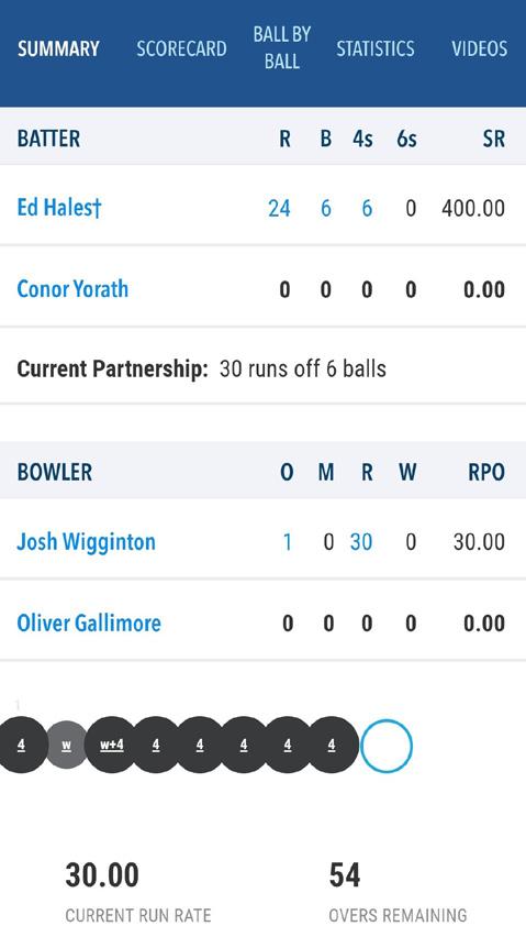 *Harpenden: 130 (19.4 overs) (James Latham 26; Olly Batchelor 21) Radlett 131 - 4 (19.4 overs) ((Archie Harrison 34; David Burnell 29*; Dominic Chatfield 22)