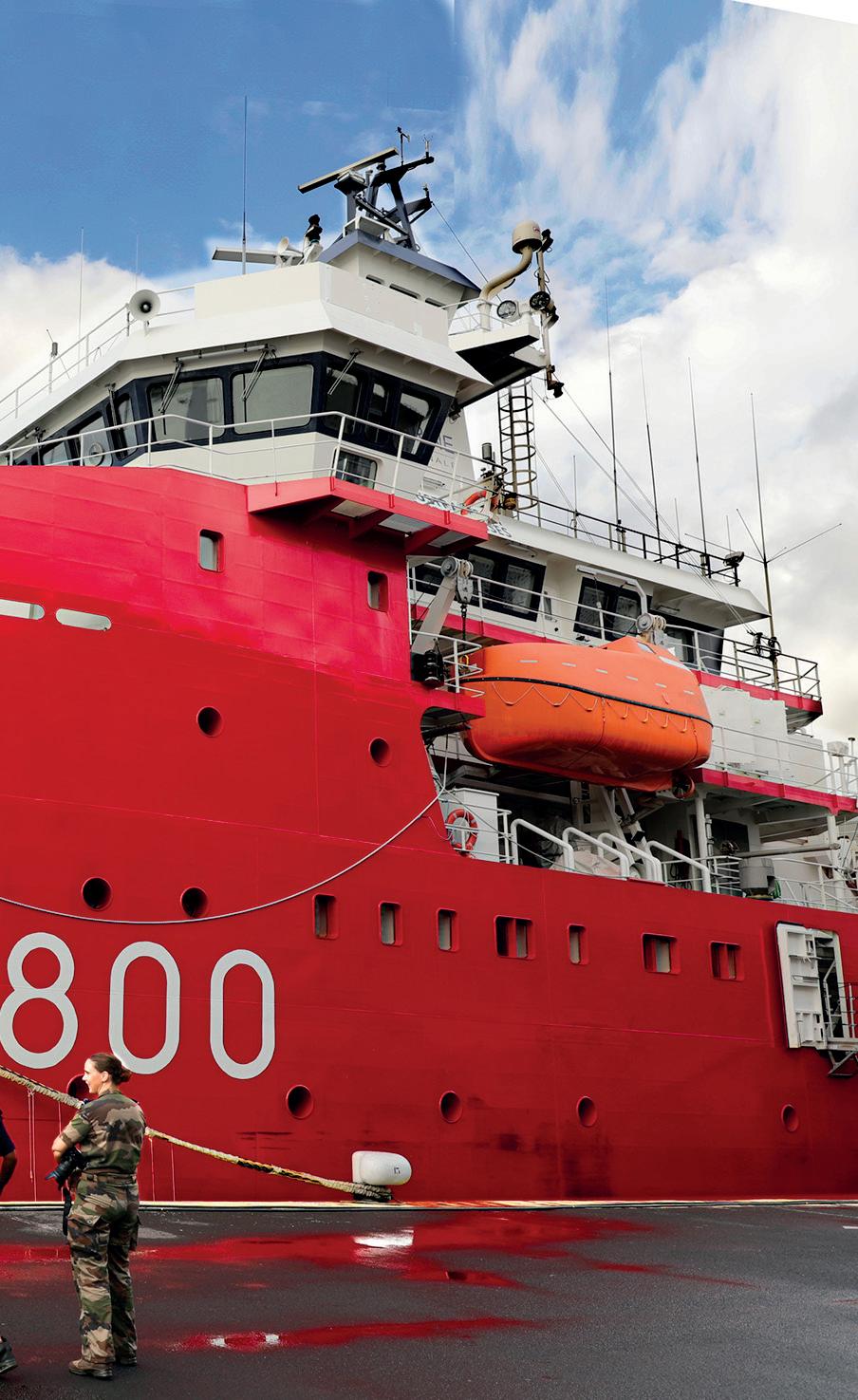 SES MISSIONS : l’Astrolabe est un navire armé et équipé par la Marine nationale. Il effectue deux types de missions. En été, il assure le soutien logistique au profit des Terres australes et antarctiques françaises (Taaf) et de l’institut polaire français Paul-É mile Victor (ipev), et le reste de l’année, des missions de surveillance et de souveraineté dans les eaux françaises.