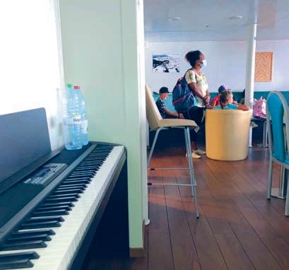 Par ici, la salle de repos. Les membres de l’équipage ont même un piano à disposition. L’année dernière, ils ont fêté Noël à bord.