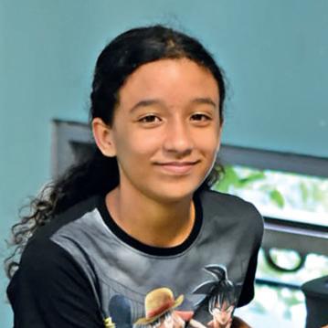 Je chante depuis toute petite, vers l’âge de trois ans environ mais j’ai véritablement commencé à travailler ma voix à six ans lorsque j’ai intégré l’école de musique Loulou Pitou à la Source à Saint-Denis. J’apprécie beaucoup l’atelier de musiques actuelles. Notre professeur, Kiki Mariapin, nous laisse le choix de sélectionner les chansons sur lesquelles on veut travailler. Ça nous permet de basculer d’un style à un autre et pour moi ça me permet de chanter de différentes manières. J’ai redécouvert ma voix grâce à cet atelier. On a aussi une grande liberté, c’est très enrichissant. Actuellement, on travaille les chansons “Oops i did it again” de Britney Spears, “Mon trésor” d’Emmanuelle Ivara, “Seven rings” d’Ariana Grande… mon coup de cœur c’est “Best Part” de Daniel Caesar.