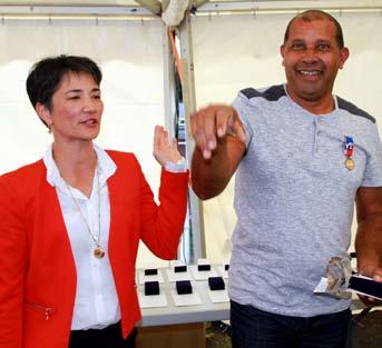 Proche de ses collaborateurs, Carole Chane-KiChune a épinglé les 101 médailles avec le sourire et un plaisir non dissimulé.