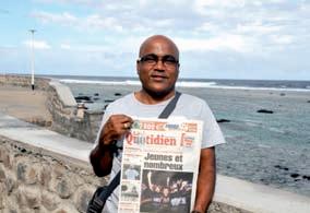 “Je suis un adepte du Quotidien car le journal s’est beaucoup intéressé à moi lorsque j’étais en métropole. Pierre-Yves Versini, à l’époque chef du service des sports, s’intéressait beaucoup à ma jeune carrière. J’étais donc souvent cité et à chaque fois ma famille m’envoyait les coupures de presse où l’on parlait de moi. Chaque jour, je commence par lire l’edito, ensuite je vais directement aux pages sports. Les articles sont pertinents et très diversifiés. il ne faut surtout pas que j’oublie de prendre le journal le vendredi, car il y a Visu pour ma femme.”
