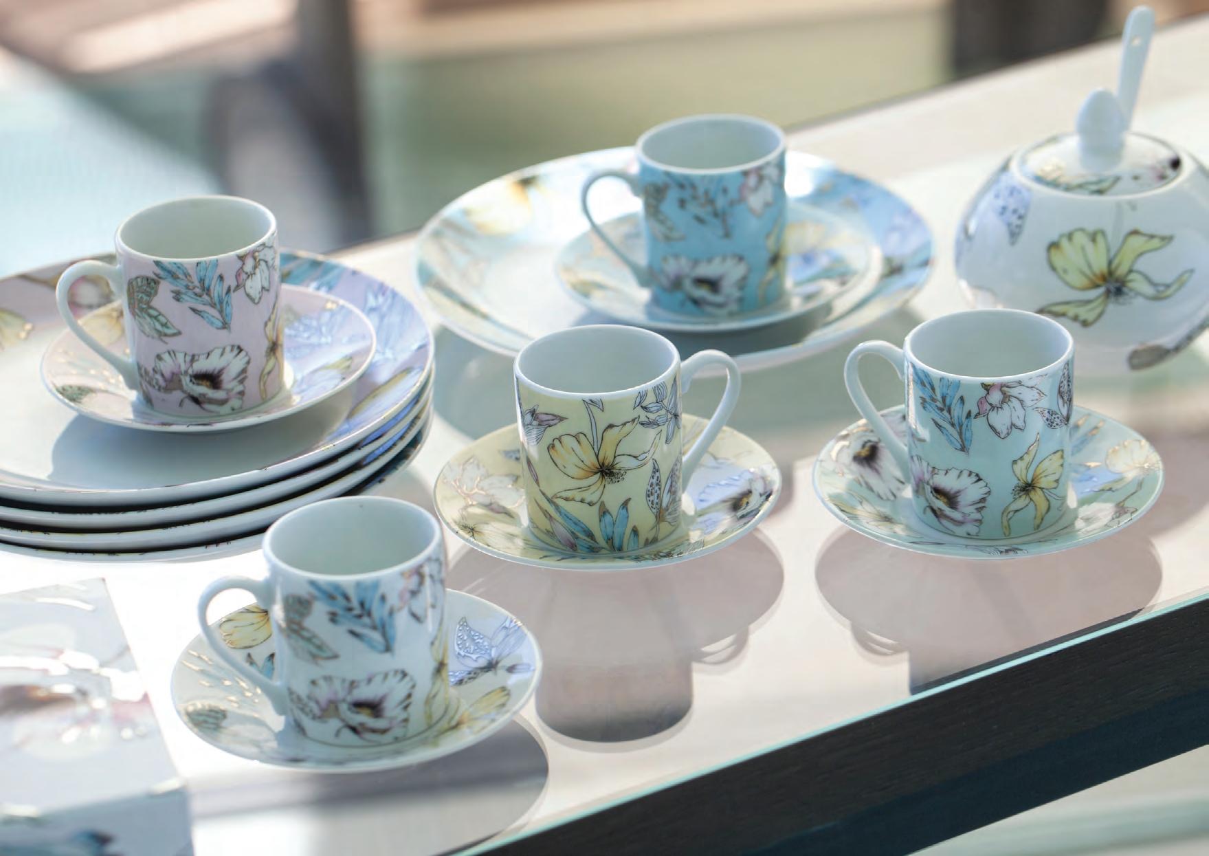 Eleganti rami in colori pastello abbracciano il bianco del più classico dei materiali: la porcellana. Tradizione e modernità si incontrano per dar vita a un set da tavola senza tempo.