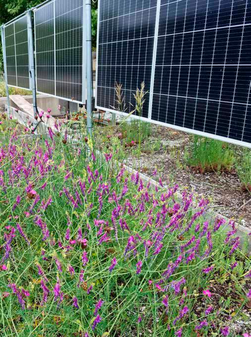 AL’adaptation à nos réalités écologiques exige de faire converger compétences architecturales, d’ingénierie et paysagères afin que des solutions durables se concrétisent. Le projet PV-Plante, impliquant HEPIA et sept partenaires du canton, expérimente en situation urbaine diverses installations biosolaires (ici une toiture végétalisée utilisant des panneaux bifaciaux) conciliant production photovoltaïque et biodiversité sur les toits. Les inter-collaborations, qu’elles soient disciplinaires, professionnelles, institutionnelles ou autres, deviennent centrales et font que le résultat est plus grand que la somme des parties.