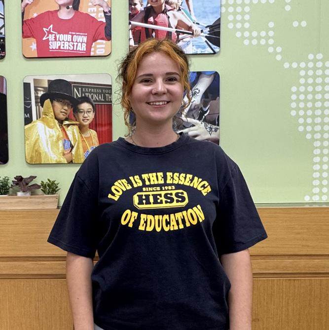 Being an English teacher at Hess means helping students grow in confidence, build skills, and explore new cultures through language. It's rewarding to see them move from hesitation to curiosity and excitement. I'm also grateful for my coworkers, whose support and teamwork make each day smoother and more enjoyable.