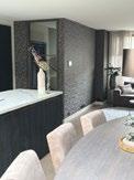 konden kijken wat het beste paste. Uiteindelijk kozen we voor een lange wand met goudkleurig behang met een rustig, verfijnd dessin, terwijl de korte wand voorzien werd van een stijlvol contrasterend accentbehang. Op de vloer ligt nu een prachtige PVC-vloer met houtdecor en voor de glazen pui hangen elegante inbetween gordijnen - in een waveplooivan plafond tot vloer. Wat betreft de vloer: ook daarin bleek Decokay Donkersloot tot het uiterste te gaan. Wij wilden geen zwevende vloer, maar door een nog te hoge vochtigheidsgraad in de betonvloer was verlijmen niet vanzelfsprekend. Arthur kwam samen met een vochtspecialist langs en stelde een plan van aanpak op. Dankzij een speciale lijm ligt de vloer er nu perfect in.