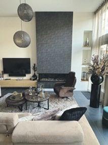 “Ik had zelf wel ideeën opgedaan via Pinterest en wilde een ‘hotel chique’ inrichting. Jennifer heeft heel goed gekeken naar onze meubels en naar de specifieke mogelijkheden van ons huis. Ik wilde heel graag een wow-factor en daar is ze uitstekend in geslaagd. De plafonds zijn bijna 3,5 meter hoog en de inbetween gordijnen, die voorkomen dat er overdag inkijk naar binnen is, staan heel stijlvol. De schouw van de open haard is behangen met speciaal behang dat tegen warmte bestand is en is een echte blikvanger.