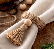 Wikkel jute of katoentouw een aantal keer om je vingers, knoop vast, knip er een klein kwastje van en schuif er een houten kraal over. Klaar.