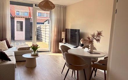 Wat meteen opvalt, is hoe centraal de woning ligt. Het centrum van Domburg én, niet onbelangrijk, het strand liggen binnen handbereik. Met haar nichtje in het huis naast haar en haar ouders zo’n drie straten verder, voelde het voor Sarah al snel als thuiskomen. De straat, genaamd Aanloop, is lekker rustig. Tegenover haar huis staat een dependance van SVRZ-woonzorgcentrum Simnia. Verderop in de straat lijken de woningen steeds groter en